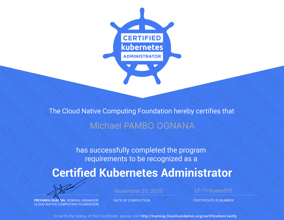 C’est l’objectif majeur en terme de formation IT que je me suis fixé pour 2020, et je peux enfin dire que c’est fait ! Il s’agit du CKA - Certified Kubernetes Administrator, l’une des certifications délivrée par la Fondation Linux. Au final ce n’est qu’un bout de papier (plutôt un simple enregistrement en base de données), mais c’est toujours gratifiant de se fixer un objectif et l’atteindre.